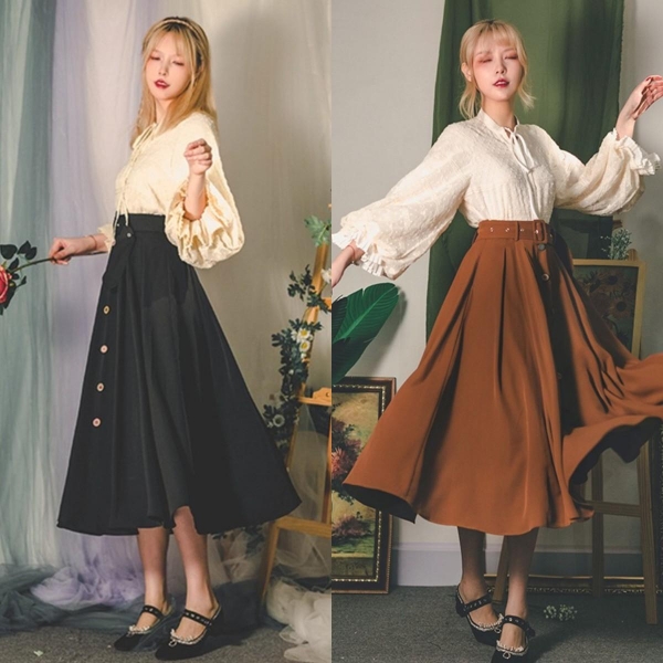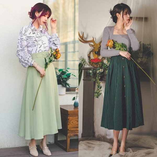 大幅的裙摆除了可以遮掩身体的一些不足外,更是行走间流转生姿的象征。搭配一件剪裁合体的上衣,能极好平衡整体的视觉效果,并且通过颜色对比或相称,提升整体服饰的层次感。