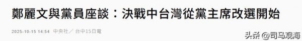 国民党主席候选人郑丽文今天出席台中党员座谈时表示,大家都说要决战中台湾,明年中台湾有多个县市长要改选,要赢得中台湾,要顺利接棒,要从国民党主席改选开始。