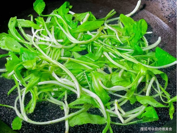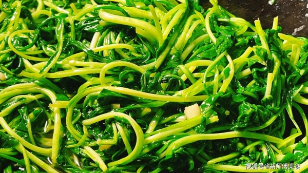 第三步:把沥干水的马兰头放入锅中,大火将马兰头翻炒50秒左右,马兰头就会断生,此时再将少许食盐放入锅中,继续翻炒七八下即可起锅食用。