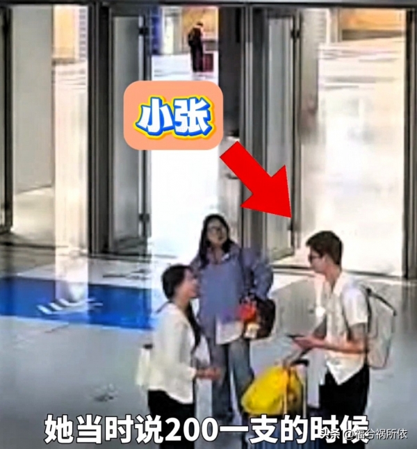 就是这个年龄稍微大一些穿粉色衣服的大姐,张口就给小张说借我点钱吧,我晚上还给你。