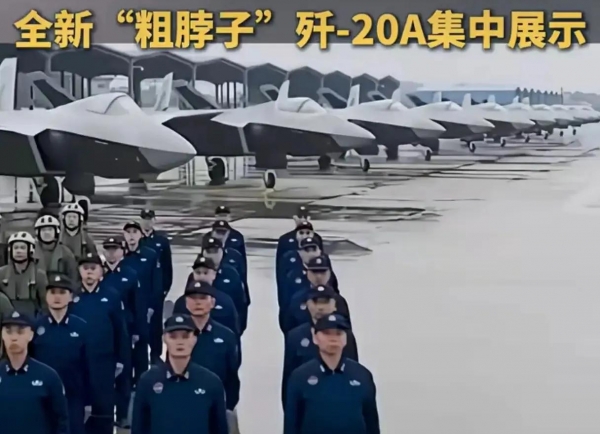 今年2月12日,央视新闻频道( CCTV 13)播出的空军某部拜年视频中一次性亮出10架"粗脖子"歼-20A,这是该机型首次以作战部队战备状态正式官宣列装,证实其已实现量产并快速形成战斗力。