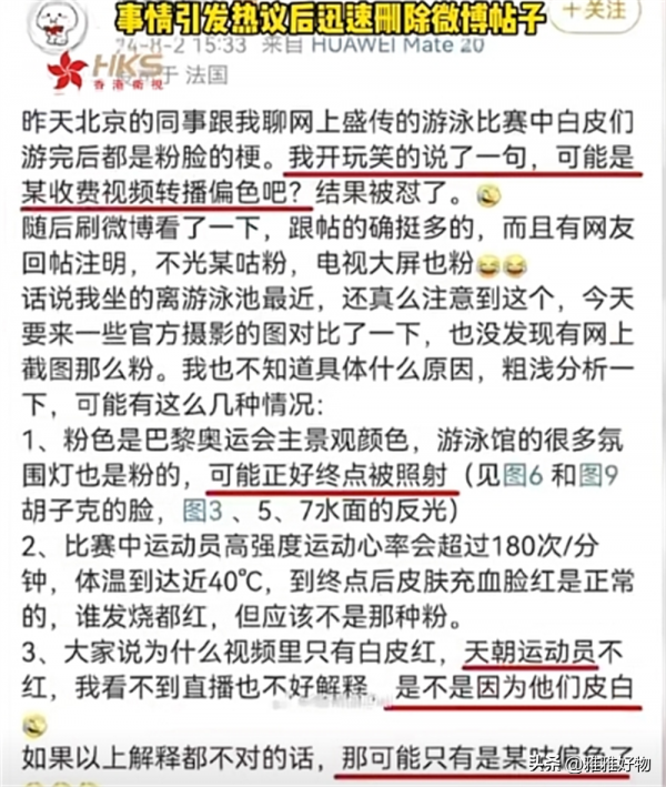 质疑的声音也并没有因此消失,反而愈演愈烈,一些人翻出了欧美选手在比赛时的照片,指出他们也出现了皮肤异常的情况,并将矛头指向了负责赛事转播的平台,认为是平台的灯光和画面设置导致了选手们肤色异常