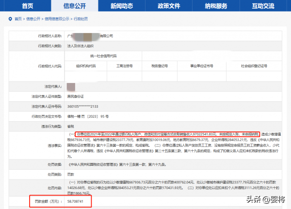 前段时间广东省税务局发布佛税一稽罚[2023]95号行政处罚决定文书,该文书称:广东某某家居科技有限公司通过私人账户、微信和支付宝等方式,收取销售收入9700多万元,未按规定入账,且未申报纳税。税务稽查局对该公司处以近60万元罚款。