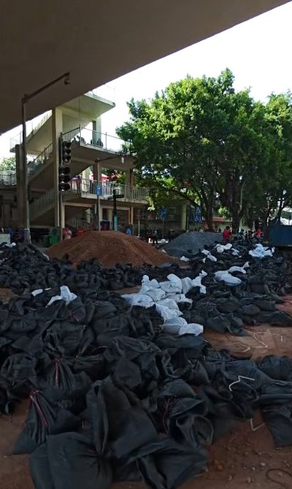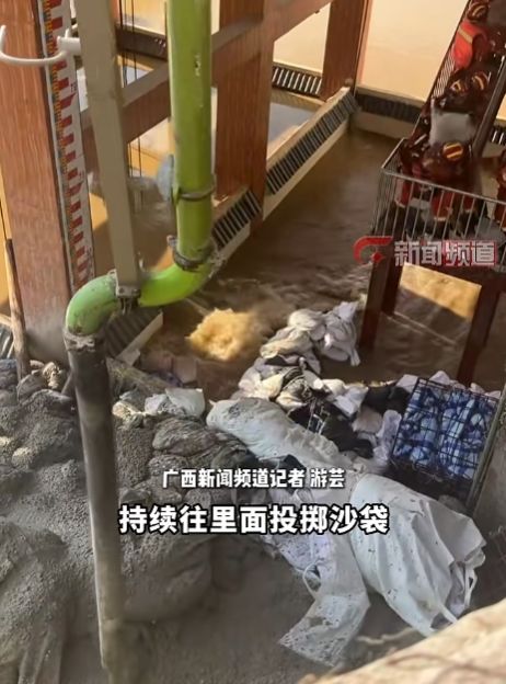 由于连日来超警戒水位浸泡侵蚀,沿江个别堤段附近出现地面塌陷等险情。 10月8日19时50分,南宁邕江北大桥右侧堤外停车场二坑泵站外江区域出现地面塌陷。 10月9日上午现场已完成渗透点周边土方回填和平整作业。