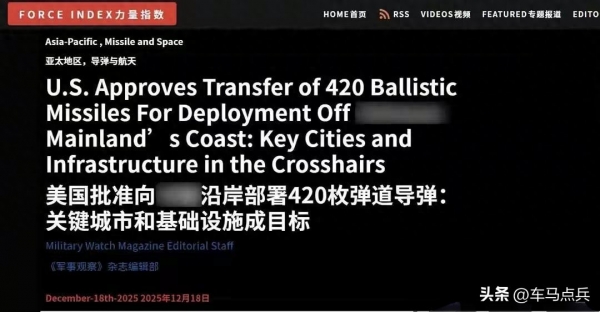 美国新一轮对台军售的消息,再次将台海局势推向风口浪尖。一份价值111亿美元的军售清单,裹挟着60辆M109A7自行火炮、82辆"海马斯"远程火箭炮呼啸而至,而其中最受美媒大肆炒作的,当属420枚MGM-140陆军战术导弹系统(ATACMS)。