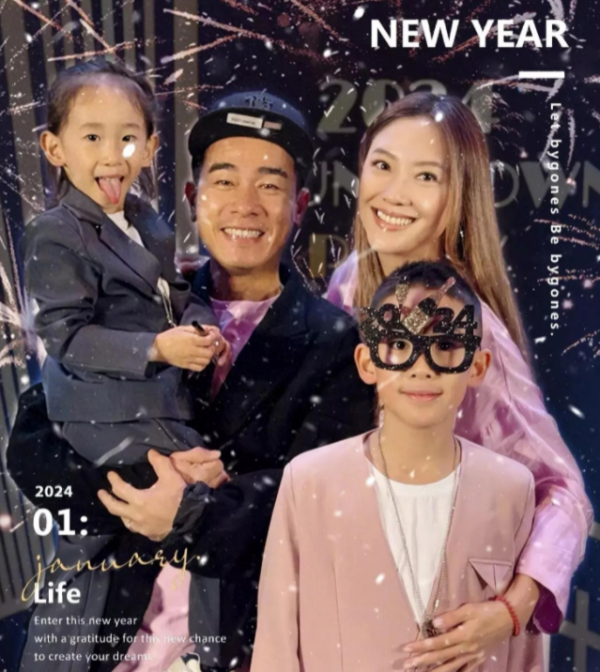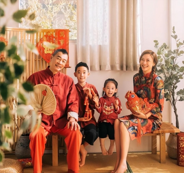 最近,陈小春在社交媒体上晒出了一组全家福,一家四口身穿红色的新年服装,笑容满面,幸福洋溢。