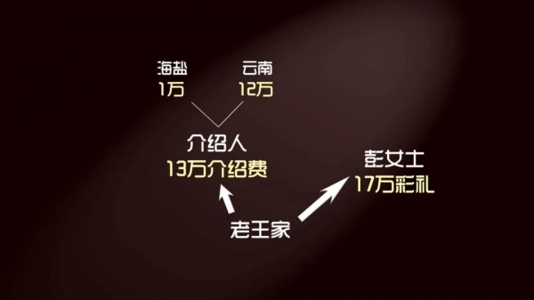 海盐县的老王,找媒人给41岁的儿子介绍一个老婆,女方是云南的,彩礼加介绍费总共花了30万,其中光介绍费就花了13万,结果结婚没几个月,这个云南儿媳居然就跑了,老王严重怀疑自己上当,做了冤大头。