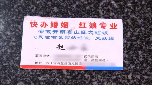 虽然女的是二婚,还生过两个孩子,但对方表示彩礼一分不能少,为了给儿子找媳妇,老王也是豁出去了,最后给女方17万彩礼,还给出去高达13万的介绍费,1万给海盐这边的两个介绍人,另外12万是给云南婚介机构的。记者了解到,老王的儿子还和婚介机构签了合同,约定结婚后就算离婚,12万婚介费也不退。