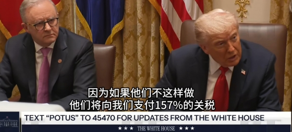 特朗普说,他认为中国会坐到谈判桌前,跟美国达成一个非常公平的协议,如果中国不照办的话,那么中国就要向美国支付157%的关税。
