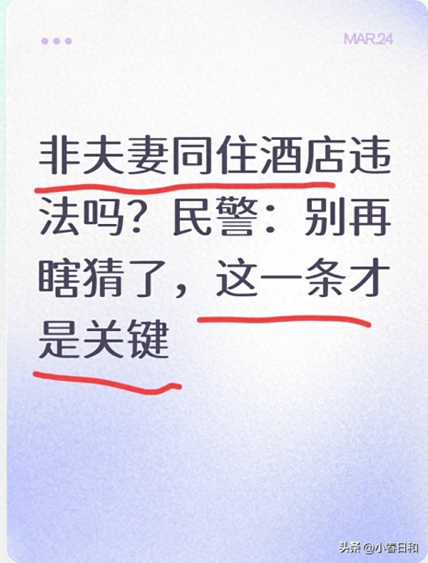 非夫妻同住酒店合法,但有一条法定红线必须严格遵守,这也是全国酒店和公安机关统一执行的标准,守住这一点,不管什么时候查房,都能安心睡,不会有任何麻烦。