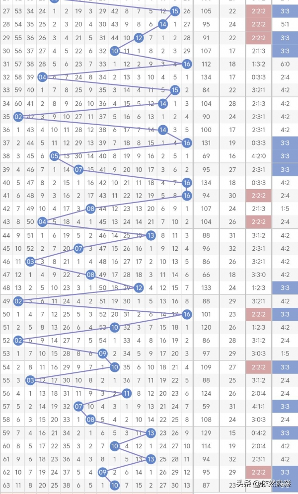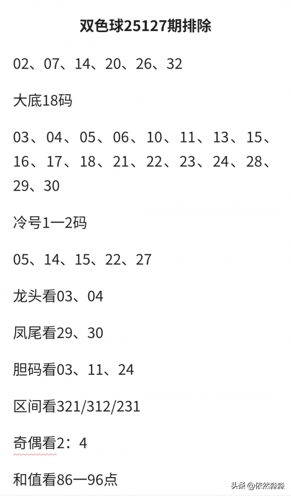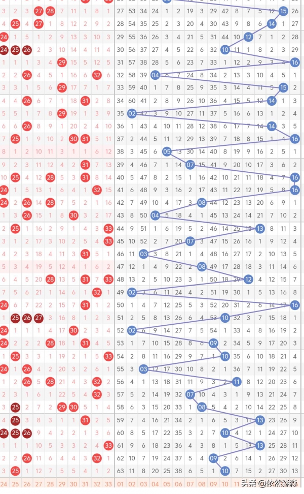 红球3路:开出1个号码25为热号,未出冷码27不可考虑,温码28、29、30考虑1码,热码23、24、26、31、32、33考虑1码,尾号考虑24、28、29、30、33之间,其中24、25、28考虑1码,对应号码24、26、30,排除号码26、32。
