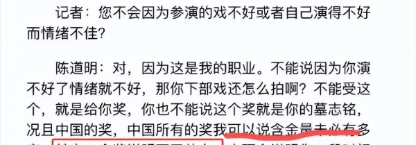 一时间,质疑声、惋惜声此起彼伏,而陈道明多年前那句"中国所有的奖含金量未必有多高"的话,似乎在此刻找到了最佳注解。