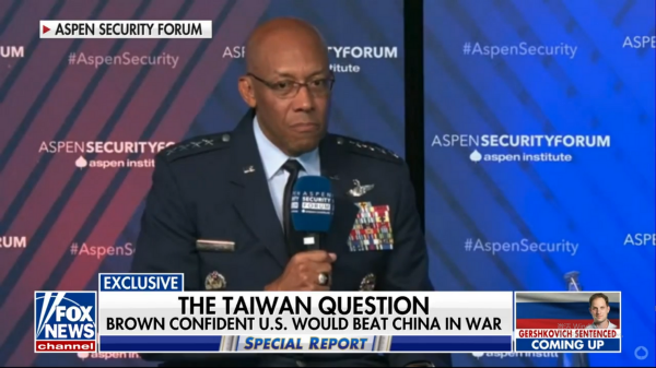 据美国福克斯电视台报道称,布朗是在参加一次活动中接受记者采访时作出上述表态的,当时记者刻意将话题引向了台海问题,而布朗则顺坡下驴,狠狠吹捧了一番美军的"战斗力",宣称美军是全球"杀伤力最强、最受尊敬"的军队,如果解放军在台海地区采取军事行动,美军完全有能力取得胜利。