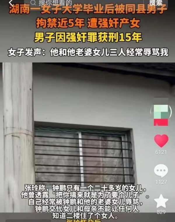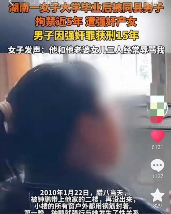 近日,湖南一女大学生被囚禁5年,遭对方强奸产女的新闻引发关注。男子因强奸罪被判刑15年。