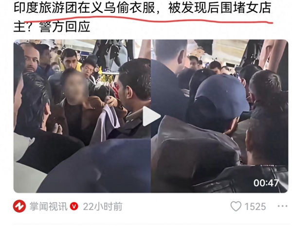 "偷别人的衣服,知道没?交给警察来",这是浙江义乌一位女店主,对着一群印度来的游客说的话。