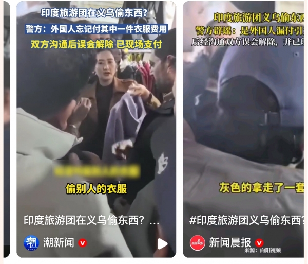 双方因语言与沟通节奏的差异,出现了短暂的争执,然后有路人拍下视频,并配上"印度旅游团偷东西"的标题发布到网上,迅速引发人们热议。