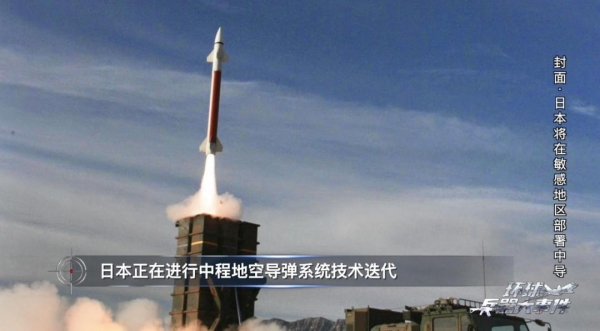 据央视军事,03式地空导弹,是日本在冷战末期为替换老旧的美制"霍克"地空导弹而开发的一款中程地空导弹系统。