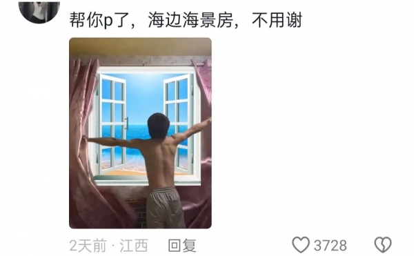 更是有网友帮忙p成了海景房,真的是让人笑不活了。