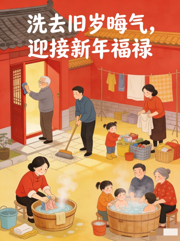 这一天要洗澡、洗头、洗被子、洗衣服、清洗厨具,把这一整年的疲惫、晦气、小病小灾全都洗掉。