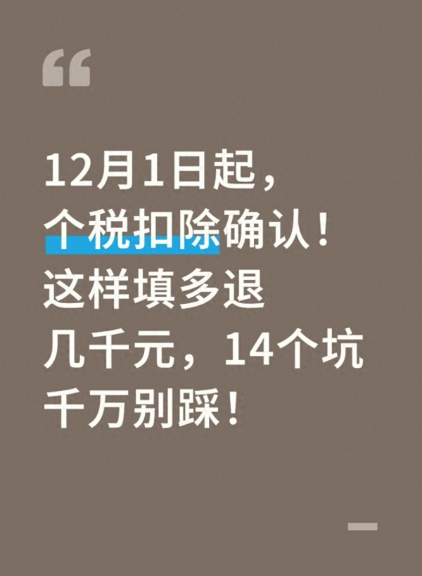 很多人觉得个税扣除确认"太麻烦""无所谓",每年都有人因为忘了操作,要么工资里多扣了税,要么汇算时少退好几千,追悔莫及。其实这事儿一点不复杂,花10分钟按步骤操作,就能让明年每个月都能享受优惠,多省的钱够给孩子买几罐奶粉、给爸妈添件新衣,太值了!