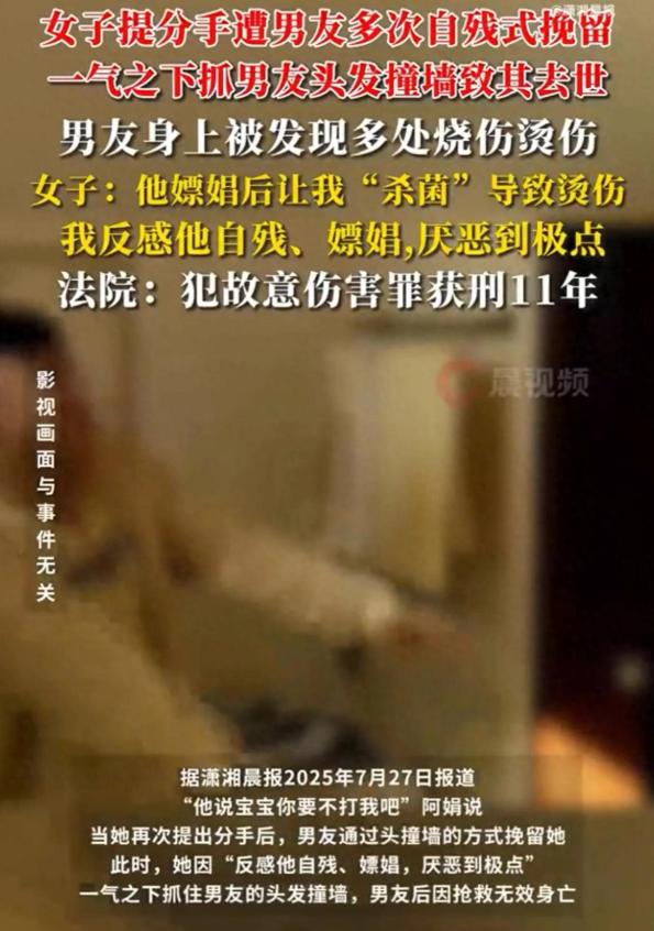 最近,山西省高级人民法院公开了一份二审的刑事判决书。一个叫阿娟的女子,因为男友阿强长期用自残的方式纠缠她、死缠烂打。在最后一次分手的时候,两人起了冲突,阿娟一气之下抓着阿强的头发把他往墙上撞,结果阿强当场倒地,后来抢救无效身亡。