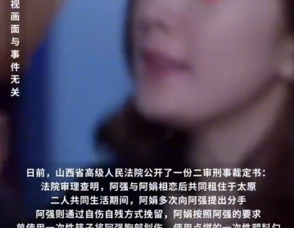 法院审理后查明,阿强和阿娟一起住在太原的时候,阿娟多次提出分手,但阿强每次都用自残的方式来挽回她。有一次,阿强要求阿娟用一次性筷子划伤他的胸部,还让她用燃烧的塑料勺烫他的腹部和腿,结果弄得他身上多处有轻微伤。
