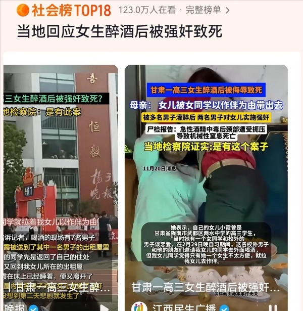 这事说起来真是让人痛心疾首。有个高三的小姑娘小霞,本来应该在教室里头好好学习,准备高考,结果却被女同学拉出去跟社会上的一帮小子喝酒。这一喝,喝出了大问题,小霞被那些小子灌得烂醉如泥,最后还被两个二十来岁的小子给强奸了,更惨的是,这事儿还导致了小霞的离世。