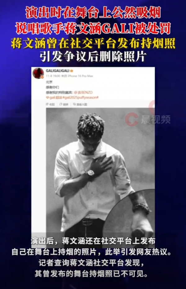 11月15日,知名歌手蒋文涵(GALI)被媒体点名。