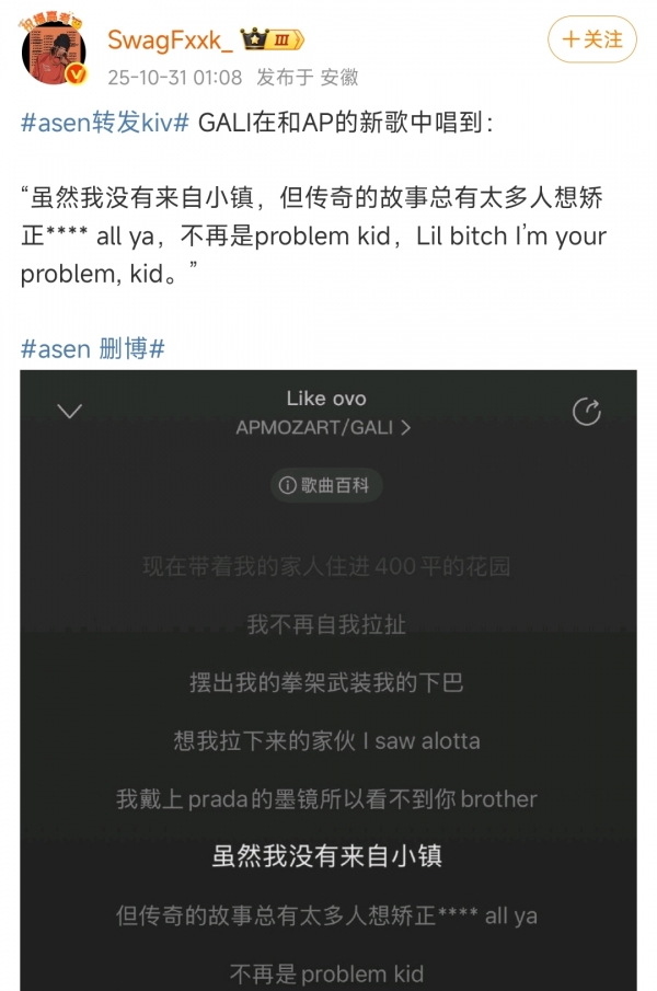 在跟别人合作的新歌曲里,歌词居然不再是problem kid这样攻击性内容,当时就被人觉得是拱火。
