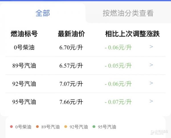 作为参考,新一轮油价调整前,广州地区92号汽油价格为7.07元/升,95号汽油7.66元/升,0号柴油6.7元/升,今晚24时开启调整后,92号汽油重返6元时代。此外,下一轮调整将于11月10日24时开启。