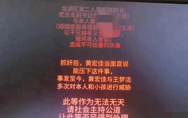 医院院长黄宏佳和女子的身份分别是医院院长和当地"婚姻幸福建设协会"的某领导。