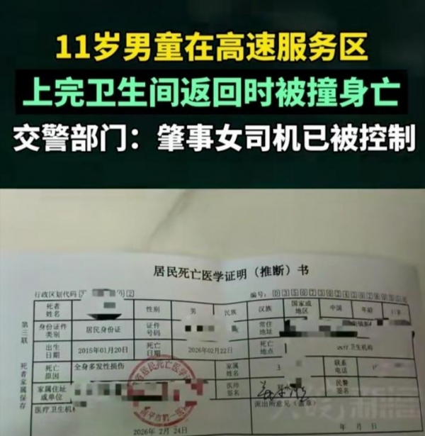 2月22日这天,福建南平服务区发生了让人心碎的事故,到现在还有不少网友替王先生一家揪心。那天晚上差不多7点,他们行车到延平区塔前服务区,准备歇歇脚。王先生正带着家人找车位,堂弟领着他的小孩小耀去了一趟厕所。没想到刚回斑马线,俩人突然被一辆路过的新能源车撞倒,小耀当场重伤,救护车赶到的时候已经没救了。