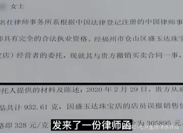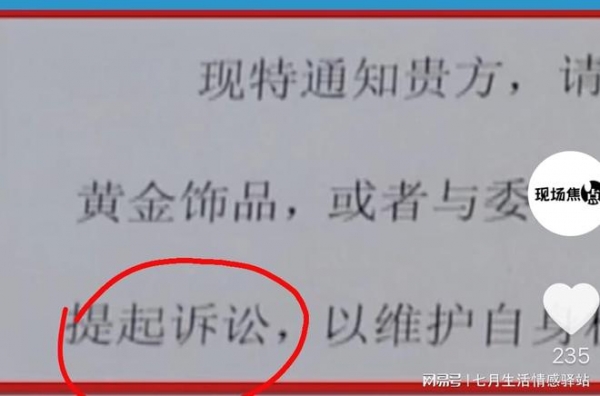 他们无非是看到现在黄金价格上涨了,觉得当时卖的价格低了,心理上存在不平衡,眼红了,他们在律师函里面声称亏损了10多万元,那是需要刘女士补上的差价!