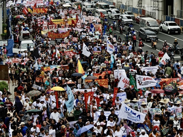 图| 菲律宾奎松市,菲律宾总统发表国情咨文报告之际,大量示威者举行街头游行集会
