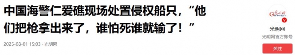 中国一直很克制,没用强制手段赶走它。但这些年,菲律宾的挑衅越来越过分,从一开始的口头争论变成了现在的实际对抗。