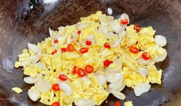 - 炒百合:锅里再来小油,下百合翻炒1-2分钟,边缘微透明时把鸡蛋回锅,撒小米辣,少量盐和一点点糖提鲜,迅速翻匀出锅。