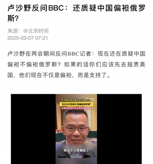 首先,卢沙野说美国偏袒俄罗斯,不仅偏袒还支持俄罗斯。由此嘲笑西方质疑中国偏袒俄罗斯意义在哪?