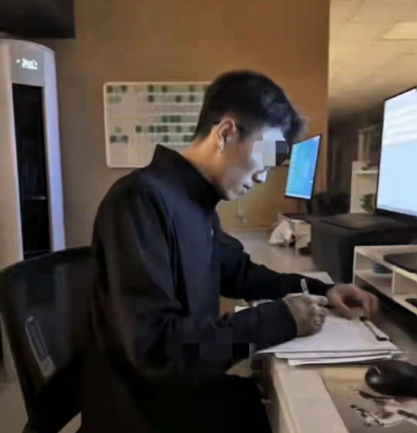 在视频画面里,可以看到一名手臂纹满纹身的男子穿着便服,在护士站帮她搬货、揉肩、写护理记录,亲密得不像是工作场所。