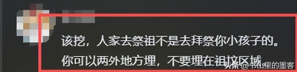 直到知情人曝出了其中的原因,有知情人表示:"该挖,人家去祭祖不是去拜祭你小孩子的,你可以两外地方埋,不要埋在祖坟区域。"