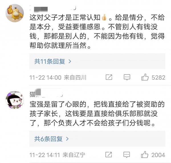 看明白了,这就是因为王宝强直接把资助款打到了被资助人手工,导致"中间商"没能赚到差价,因此"中间商"恼羞成怒、心生不满。