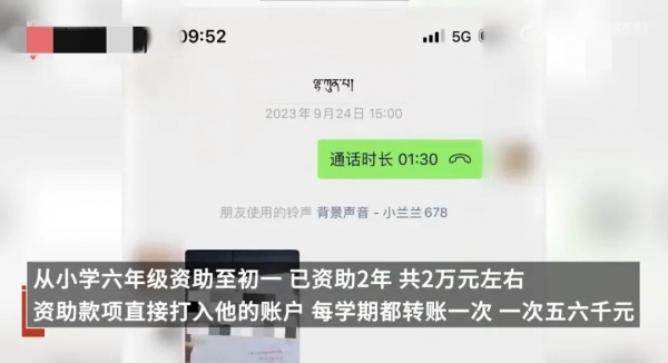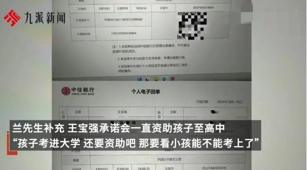 他表示,资助款项是直接打入他的账户,每学期都会转账一次,一次五六千元,王宝强曾承诺过会一直资助孩子读完高中。