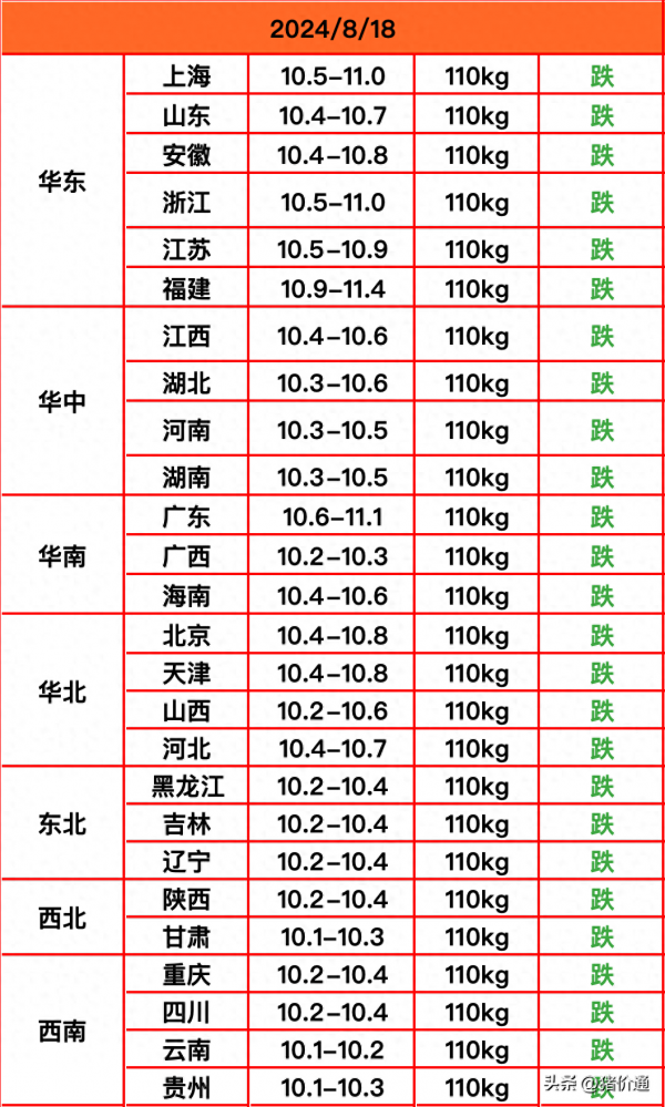 其中华东、华中、华南地区开始转为全面下跌,而华北和东北地区也全面下跌,另外西北和西南地区也开始全面下跌。