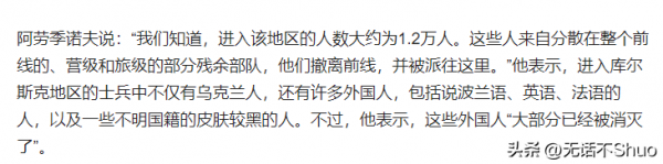 这位少将还提到那些进入到俄罗斯地区的乌军,很多都是外国雇佣兵,谁也想不到那些为了钱不要命的雇佣兵,居然会跑到俄罗斯境内,真是好日子到头了,阿劳季诺夫说那些为乌克兰卖命之人也被消灭的差不多了。