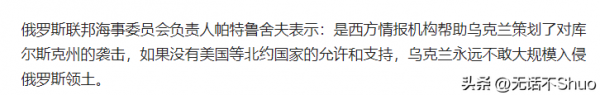 说到底俄乌战争的源头可能还是要从美国找起,俄罗斯联邦海事委员会负责人表示,"如果没有美国等北约国家支持,乌克兰永远不敢入侵俄罗斯"。