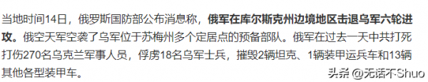 在库尔斯克州方面,俄罗斯抵御了乌军的六次攻势,但泽连斯基还嘴硬道:"乌军在库尔斯克州取得了进一步进展,还俘获了100多名俄军士兵",全然不提自己损失多少军力。