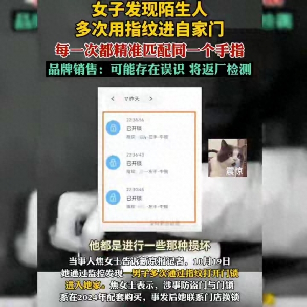 2025年10月23日深夜,北京朝阳区某小区惊现离奇一幕。焦女士盯着手机监控画面,看着陌生男子熟练地用指纹打开自家防盗门,大摇大摆地走进卧室,对着衣柜撒尿。这个月第四次"回家"的男子,竟将她的家当成了私人厕所,而这一切,都源于智能门锁的"认假率"危机。
