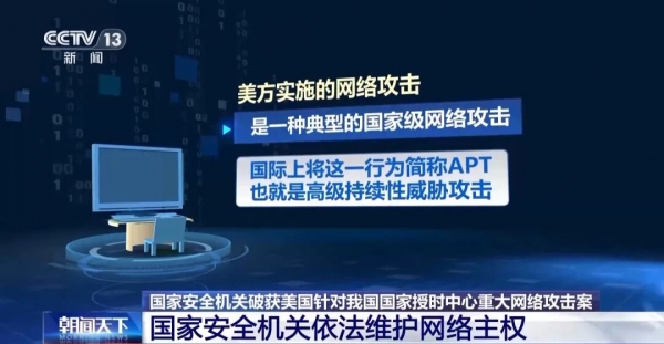 专家介绍,美方实施的网络攻击是一种典型的国家级网络攻击,国际上将这一行为简称APT,也就是高级持续性威胁攻击。