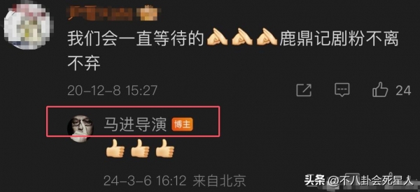也有网友发现,马进在24年3月就已经使用手机了,给某位等《鹿鼎记》的粉丝点赞,照此分析,彼时他应该已经"获得了自由"。
