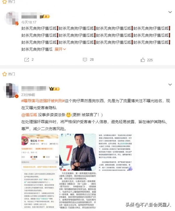 马进社交账号停更的时间节点也与强奸发生时间比较接近,狗仔爆料的真实性比较高,只是对受害者信息的曝光,确实应该被谴责,属实无良。