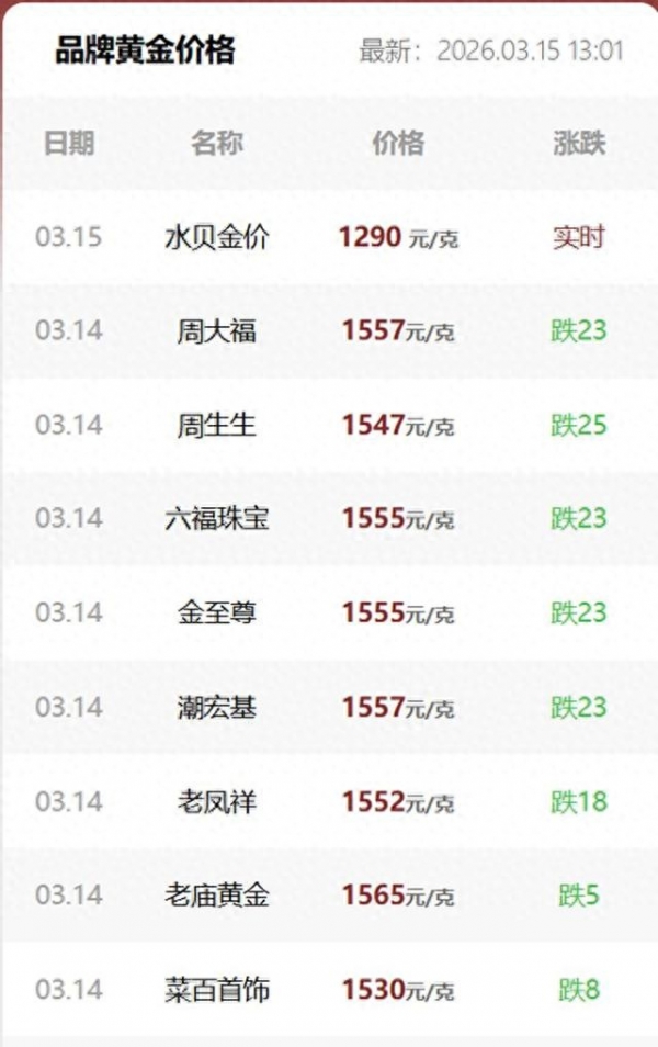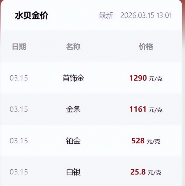 截至3月中旬,国内金饰价格直接冲到1640多块/克,周大福、老凤祥这些咱们常买的大品牌,金饰价早就破1620元/克了。